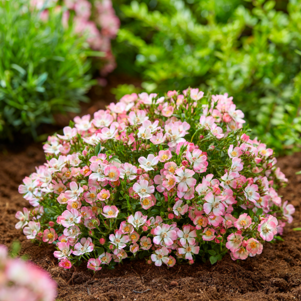 Cutie Pie is een kleine, doornvrije krachtpatser met lage groeiwijze. Deze dwergvariëteit bloeit uitbundig en geeft geen vruchten en hoeft dus niet gesnoeid te worden. Omdat ze zo laag en compact blijft (tot 15 cm hoog en 20-30 cm breed), is Cutie Pie perfect geschikt voor potten en containers, balkons, terrassen en kleinere tuinen.