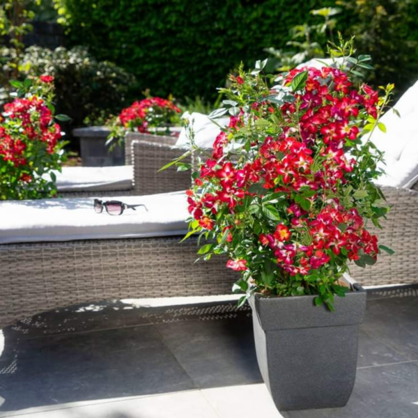 Rosa Everglow Ruby is compact en zeer goed vertakt, wat haar ideaal maakt voor potten en containers. Everglow Ruby groeit op eigen wortel en is zelfreinigend, wat natuurlijk betekent dat je voor langere tijd van de bloemen kunt genieten. Wat haar helemaal uniek maakt, is het feit dat haar bloemen door de jaren heen van kleur veranderen. Of zoals Thijs het zegt: “het is een echte vrouw: hoe ouder ze wordt, hoe mooier!”.