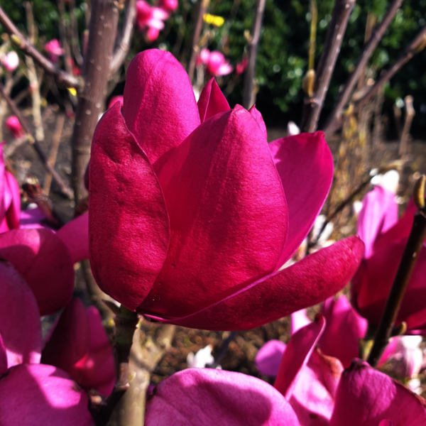 Magnolia Pink Pyramid valt extra op door zijn vroege bloei. De grote, donkerroze bloemen verschijnen in het voorjaar en komen in de zomer terug voor een tweede bloei. Pink Pyramid heeft een smalle, opgaande groeiwijze - in de vorm van een piramide. De ideale boom voor de kleinere tuin of zelfs in pot op balkon of terras.