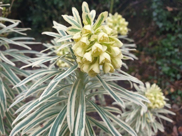 5. Euphorbia 'Tasmanian Tiger' De groen gecentreerde, witte bloemen van de 'Tasmanian Tiger' bloeien in het vroege voorjaar en brengen leven in een rotstuin of mediterrane tuin. Deze prachtige Euphorbia met bont blad is compact en gelijkmatig bont. Winterhard tot -15 ºC, gelukkig in zowel de volle zon als halfschaduw én zo onderhoudsarm als een onderhoudsarme plant zou moeten zijn.