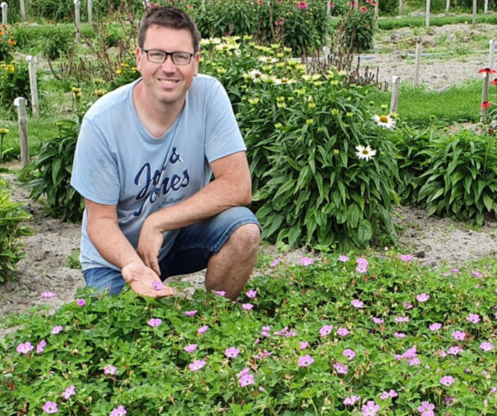En ‘Kelly-Anne’ stak met kop en schouders boven de andere zaailingen uit: “De kleur was heel sprekend, écht roze. En daar was de vraag én onze zoektocht naar. Wat in de loop van de tijd nog meer opviel was het feit dat de eigenschappen van ‘Kelly-Anne’ nóg beter waren dan die van Rozanne. ‘Kelly-Anne’ bloeit net wat compacter, en waar Rozanne bij hele hoge temperaturen erg afzwakt met bloeien, bloeit ‘Kelly-Anne’ ook bij hitte gewoon vrolijk door.”