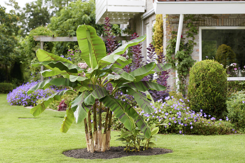 2. Musa (Banana Plant) The banana plant is a quintessential tropical specimen, characterised by its large, lush leaves and bi-coloured foliage. Its dramatic foliage provides a bold statement in any garden. Musa makes an excellent focal point or backdrop in tropical gardens. It can also be grown in containers, bringing a splash of the tropics to patios and balconies.