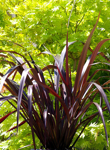 Lekker wild uitziende planten als Phormium zijn ideaal om potten en borders te vullen in de jungletuin. Phormium Black Adder zorgt bijvoorbeeld voor mooie contrasten en laat de bloemen en bladeren eromheen extra knallen.