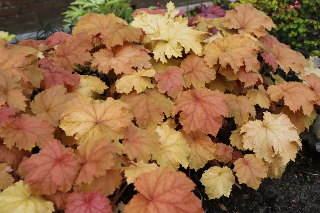 Heuchera Kassandra heeft prachtig, groot, sterk oranje-perzikachtig blad. Een kruising tussen de beroemde 'Caramel' en 'Mocha', en dat resulteert in niet alleen sterke bladeren, maar ook prachtige kleuren het hele jaar door. Kassandra is multi-inzetbaar: in pot, als tuinplant, voor openbaar groen, in de volle zon, halfschaduw of schaduw.