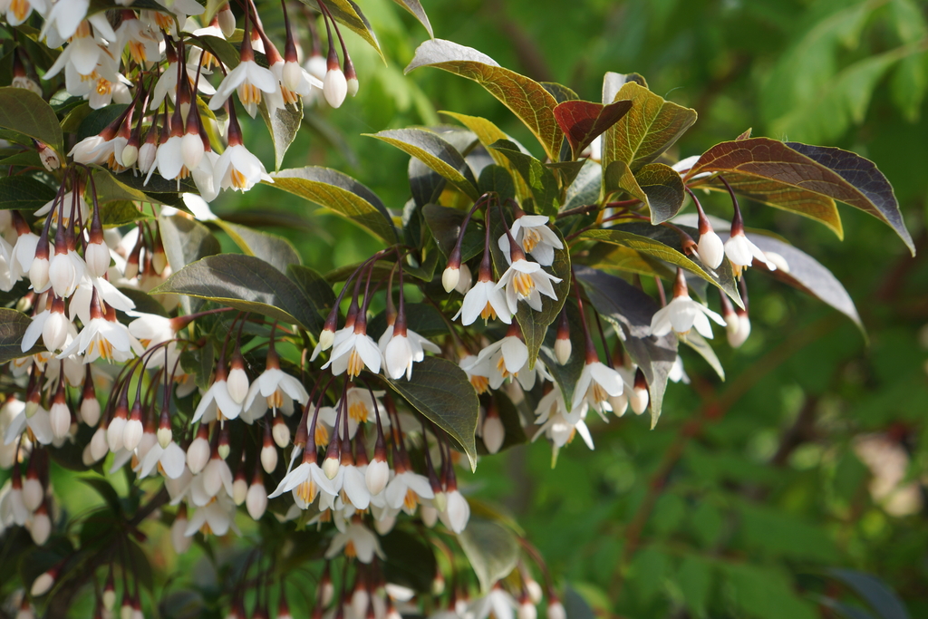 Ook Styrax June Snow maakt indruk met haar prachtige hangende, klokvormige witte bloemen. Ze ruiken heerlijk zoet en bloeien lang, zodat je alle tijd hebt om van ze te genieten. De compacte en rechtopstaande groeiwijze, vergelijkbaar met Evening Light, maakt June Snow perfect voor kleine tuinen en andere locaties met beperkte ruimte.